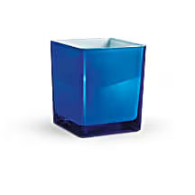 Orange roses, dark orange spray roses, orange alstroemeria, orange carnations, blue delphinium and blue sinuata statice are arranged with dusty miller and leatherleaf fern. Delivered in a Color Splash Cube.